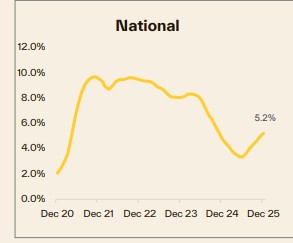The annual pace of national rental growth gained some momentum in Q4, with rents rising 5.2% over the 2025 calendar year, up from the 4.8% rental increase recorded in 2024 according to figures compiled by data analytics firm Cotality, in their Quarterly Rental Review. This report also showed that Regional rental growth continues to outpace the capitals. Regional rents were up 6.2% in 2025 compared with a 4.8% increase across the combined capitals.